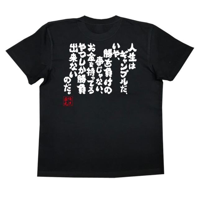 おもしろtシャツの俺流総本家 人生はギャンブルだ いや 勝ち負けの事じゃない お金を持ってるやつしか勝負出来ないのだ 喜ばれる人気のプレゼント ギフトは是非当店で