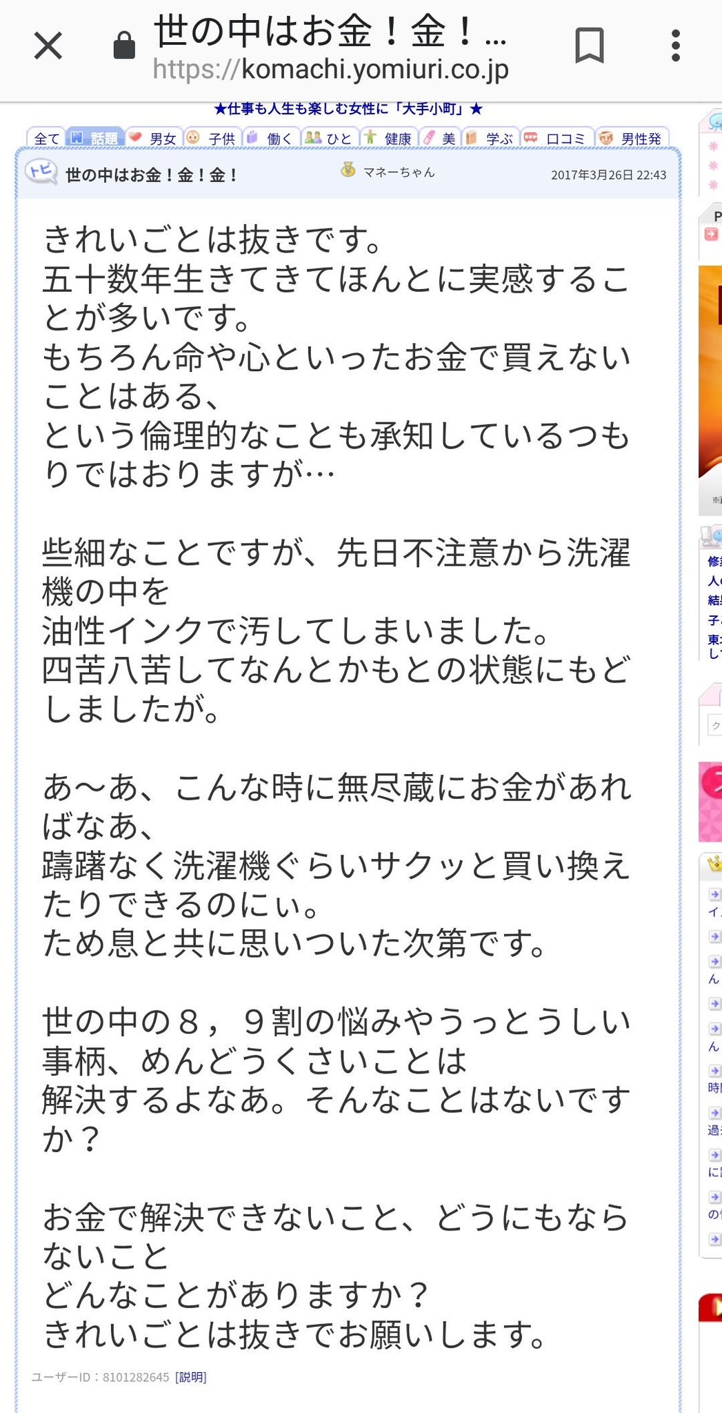 お金が好きだという女はみっともない 私から皆さんへ