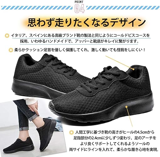 Amazon Beibeijia スニーカー レディース スポーツシューズ ウォーキング 散歩 ランニングシューズ 超軽量 黒 25 5cm Beibeijia ウォーキング