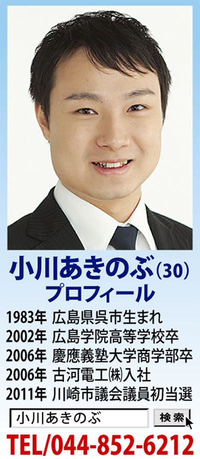 日本の仕組みは地方から変える No 12企画 製作 小川あきのぶ事務所 川崎から確かな公教育を 川崎市議会議員 みんなの党 小川あきのぶ 高津区 タウンニュース